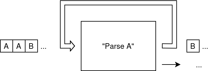 Intuitively, by “chaining” two parsers (here, the one that parses A and then the one that parses B), we obtain what looks (or behaves) like a box that takes a stream of symbols as input and outputs a result and the remainder of a stream; in other words, we got a new parser!